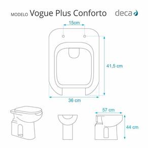 Compatível com o vaso sanitário Deca modelo Vogue Plus Conforto com ou sem caixa acoplada (é compatível com os dois tipos de vasos).