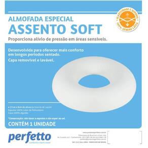 O Assento Soft Látex Preto Perfetto proporciona alívio de pressão em áreas sensíveis, tornando o período sentado mais confortável. É feito com espuma 100% látex de poliuretano e possui uma capa removível e lavável feita de 100% algodão. Suas medidas são: diâmetro externo de 37 cm, diâmetro interno de 14 cm e altura de 8 cm.