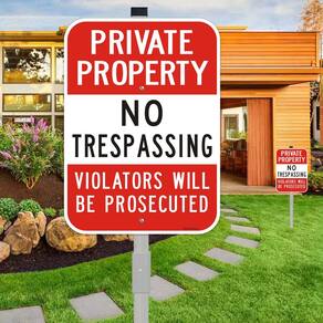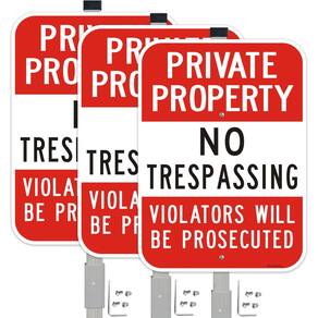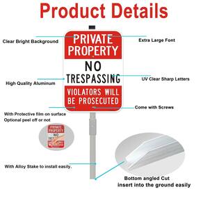 - FÁCIL INSTALAÇÃO: — ? A propriedade privada No Trespassing Sign vem com uma estaca de 36” de altura e uma bolsa de parafusos para facilitar a montagem no solo.