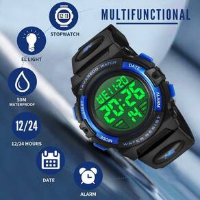 Design multifuncional: display digital, luz de fundo LED, data, 12/24 horas, alarme, cronômetro, 50m à prova d'água. Ótimo presente de aniversário e Natal para as crianças.
