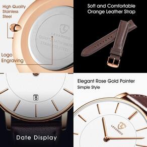 - Relógio de pulso moderno: mostrador clássico e elegante, elegantes marcas de hora em ouro rosa e pequena janela de data. Design moderno adequado para homens e mulheres.