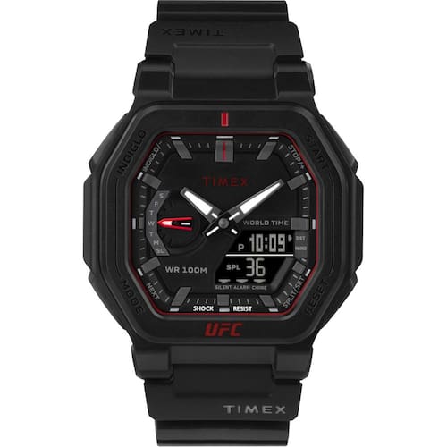 Timex Relógio masculino UFC Colossus de 45 mm, Preto/vermelho, resistente
