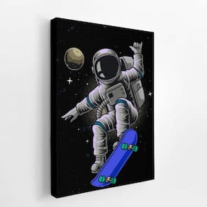 Astronauta De Skate Universo Planeta Quadro Canvas 60X40Cm