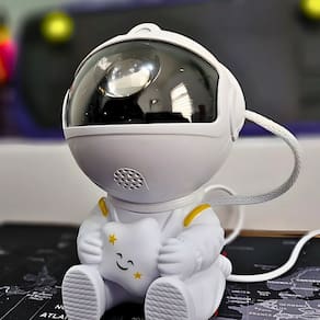 Características do Produto 8 Efeitos Nebulosos: Experimente diversas combinações de nebulosas e estrelas verdes que proporcionam uma sensação de envolvimento com a natureza. Controle Remoto: Fácil de usar, ajusta brilho, velocidade e padrões de luz. Modos Flexíveis: Use os modos de nebulosa e estrelas juntos ou separados para uma atmosfera única. Ângulo de Projeção Ajustável: Direcione a projeção com facilidade em diferentes direções. Versatilidade: Ideal para quartos, salas de jogos, home theaters e qualquer ambiente que necessite de iluminação envolvente. Vantagens do Produto Ambiente Tranquilo: Perfeito para meditação, leitura e noites de filme. Iluminação Confortável: Luz suave e acolhedora, ideal para crianças com medo do escuro. Design Moderno: Adapta-se facilmente a diversos ambientes. Multifuncional: Serve como decoração e luzes para momentos especiais. Itens Inclusos 1x Projetor Astronauta 1x Controle Remoto (sem baterias) 1x Cabo USB 1x Manual de Instruções Especificações Técnicas Cor da Nebulosa: Modo de 7 cores Cor do Produto: Branco Material: ABS/PVC Potência de Entrada: 100-240V, 50/60Hz, 0.5A Comprimento do Cabo USB: 1 metro Potência do LED: < 5W Potência de Saída: 5V/1A Faixa de Controle Remoto: Até 5 metros Um Presente Ideal para Todas as Idades Este projetor é uma excelente opção para quem aprecia a beleza do céu. Perfeito para diversas ocasiões, seja para criar um clima relaxante ou uma iluminação divertida e interativa. É ideal para quem busca praticidade e encanto em um só produto.
