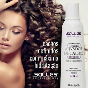 Aplique o Ativador de Cachos Salles Profissional nos cabelos úmidos ou secos, do comprimento às pontas, diariamente ou sempre que desejar revitalizar e definir seus cachos
