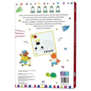 Este incrível kit é pura diversão e muito aprendizado! Ele vem com um livro e oito canetas coloridas, para você fazer as atividades fantásticas e, depois, apagar e refazer quantas vezes quiser! Tem jogo das sombras, labirinto, jogo dos erros, jogo das diferenças e muito mais! Vem com: 8 canetas coloridas com miniapagadores acoplados e livro de atividades. Você vai adorar!