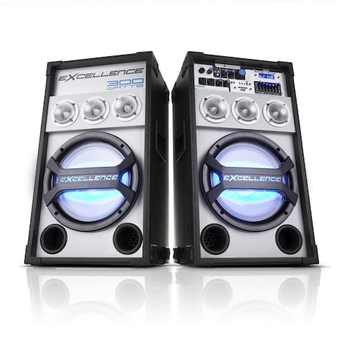 300 watts de potência, com Bluetooth, entrada USB, leitor de cartão de memória, reproduz arquivos MP3, rádio FM, 2 Alto-falantes de 10 polegadas, 2 entradas para microfone, (Microfone não incluso) entrada para guitarra, equalizador de 7 bandas, possui 06 tweeter, dupla Voltagem 127 v / 220 v, controle de liga e desliga das luzes de Led. Garantia de 06 meses.