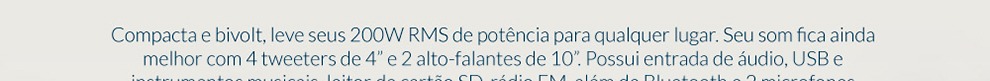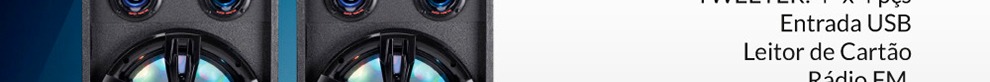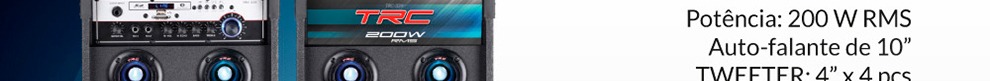 Fabricadas com 200 watts, a caixa de som TRC possui alto-falante de 10 polegadas que garante uma sonoridade limpa, entrada USB e leitor de cartão para dar opção de ouvir diversas playlists e iluminação frontal em LED com botão liga e desliga.