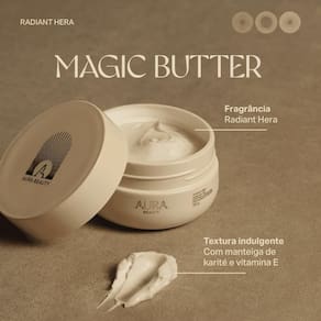 Aura Beauty Magic Butter Radiant Hera iluminadora desodorante corporal. Com notas florais encantadoras, Aura Beauty Magic Butter Radiant Hera oferece hidratação profunda com toque luminoso. A Iluminadora Aura Beauty Magic Butter Radiant Hera conta com fórmula cremosa e rica em ativos hidratantes, proporcionando uma sensação de suavidade, ao mesmo tempo que ilumina a pele com um brilho radiante e natural. Possui textura cremosa que penetra rapidamente na pele, sem deixar resíduos. Com fragrância floral envolvente, é ideal para quem busca um cuidado completo, deixando a pele macia, hidratada e com um perfume delicado. Notas Olfativas: Notas de Saída: Frutas Frescas e Bergamota Notas de Coração: Rosas e Peônia Notas de Fundo: Almíscar e Baunilha Conselho de Aplicação Aplique generosamente sobre a pele limpa e seca, principalmente nas áreas mais secas, massageando até completa absorção. Para melhores resultados, use diariamente para uma pele iluminada e hidratada. de Karité: consagrado agente de hidratação intensa da pele, forma uma barreira de proteção natural, evitando a perda de umidade ao longo do dia. Vitamina E: potente agente antioxidante que previne os danos causados por radicais livres. Pele hidratada, perfumada e iluminada. Marca: Não Informado