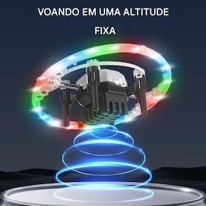 Luzes mágicas RGB 360: Show de luzes RGB giratório enquanto voa Voo Vertical de 90: Voa pra cima e fica no ar, criando aventuras incríveis Modo Órbita e Flutuação Automática: O drone flutua no ar e pode girar sem parar, perfeito para você fazer vídeos incríveis Decolagem e Pouso Automáticos: Basta apertar um botão para ele decolar e pousar sozinho, super fácil de controlar Três Velocidades: Escolha a velocidade que mais combina com você e se divirta à vontade Controle Super Simples: Movimente para frente, para trás, para os lados, e gire com muita facilidade.