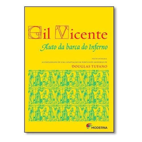 Título do livro : Auto da Barca do inferno Autor : Gil Vicente Idioma : Português Editora do livro : MODERNA (PARADIDATICOS) Capa do livro : Mole Quantidade de páginas : 96 Tipo de narração : Manual Data de publicação : 30-12-1899 Gênero do livro : Artes e Cultura Peso : 400 g Ano de publicação : 1899 Altura : 30 cm Largura : 23 cm