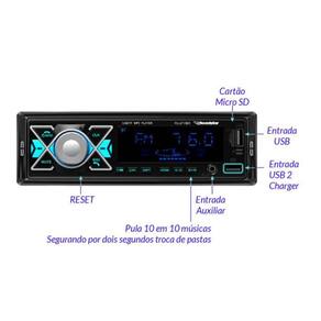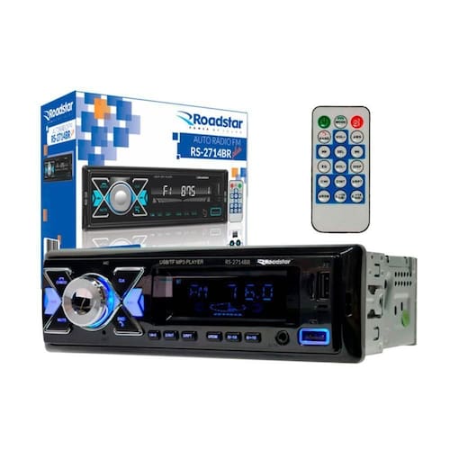 Auto Radio Roadstar Bluetooth - Rs2714br Plus DESCRIÇÃO TÉCNICA ? Praticidade ? Uma grande novidade no RS-2714BR é a possibilidade de recarregar seu celular e escutar sua playlist ao mesmo tempo, graças as duas entradas frontais de USB, proporcionando assim mais uma opção rápida e prática para carregamento do seu aparelho enquanto dirige. ? Conectividade ? O auto rádio RS-2714BR possui entrada frontal auxiliar, entrada frontal para cartão micro SD, 2 entradas frontais USB sendo uma para você escutar suas músicas preferidas pelo Pen Drive e outra para recarregar seu celular e conexão Bluetooth. ESPECIFICAÇÃO TÉCNICA ? Painel: Fixo com botões na cor azul ? Visor: LED Branco ? Rádio: FM com memória para 18 estações FM ? Controles: Graves, Agudos e Balanço dos Canais ? Conexões: Bluetooth ? Entradas: Micro SD, Auxiliar e 2 USBs (1 Charger e 1 Player) ? Saídas: 4 RCA ? Tipo de Conector: ISO ? Controle Remoto: SIM (Físico e por aplicativo) ? Potência: 4 Canais de 55 Watts RMS Marca: Não Informado Ean: 7898587424554