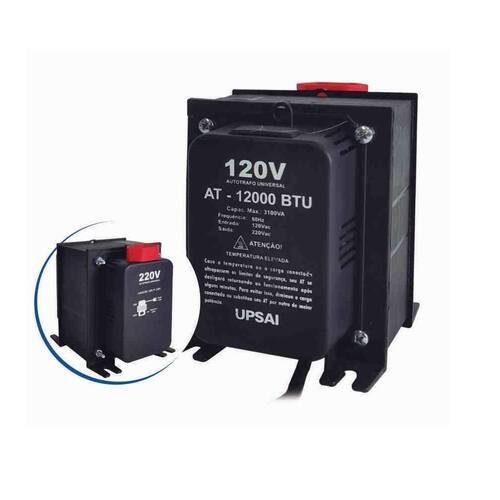 Fabricante: Upsai Modelo: AT 12000BTU Potência máxima: 3100 VA ou 2170 Watts Transformador: converte 120v para 220v Termistor: sim, contra excesso de carga e temperatura com rearme automático Consumo em vazio: 2% Enrolamento: Classe - H Núcleo: Aço-Silicio Temp. De operação: 0 a 40º C Umidade relativa 0 a 95% sem condensação Tipo do plugue entrada 120v: NBR14136 Tripolar 3 Pinos Tipo de tomada saída 220v: NBR14136 Tripolar 3 Pinos 20A aceita 10A e 16A Peso aprox.: 4,8kg Largura: 11cm Altura: 13cm Profundidade: 14cm Garantia: 6 meses da fábrica + 6 meses adicional 12 meses total . Disponibilidade: imediata