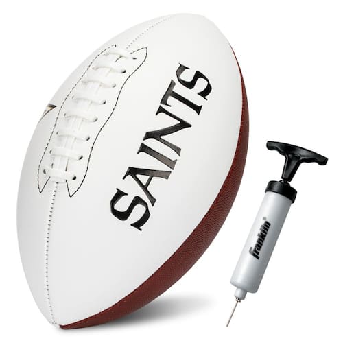 Franklin Sports NFL New Orleans Saints Autograph Football - Tamanho oficial painel branco lembrança futebol para autógrafos + assinaturas - NFL Team Fan Shop Memorabilia Futebol para exibição