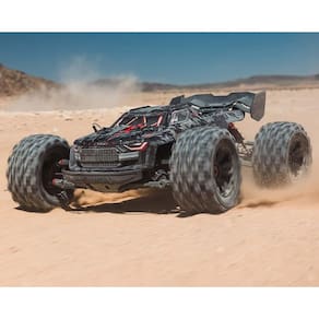 ARRMA's biggest RTR speed monster truck now has EXtreme Bash toughness everywhere it counts, plus a powerful 8S LiPo-capable Spektrum™ brushless system and aggressive new EXB color scheme. Bash with more power and more control, at a game-changing value!