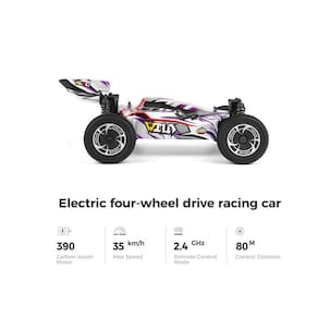 Frequência de controle remoto de 2,4 GHz: O sistema de rádio de 2,4 GHz com capacidade anti-interferência permite que você corra simultaneamente na mesma pista. A distância de controle é de até 80 metros.