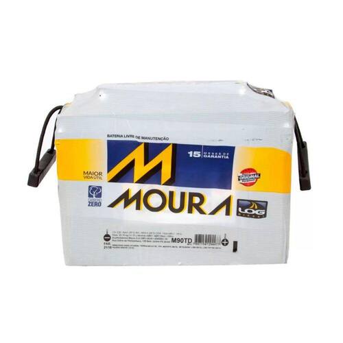 Bateria Automotiva Moura 90AH M90TD MFA A bateria de carro Moura M90TD tem 12 volts, 90 amperes e Polo Positivo Direito. Mais segurança saída de gás e pastilha antichamas embutidos no produto,permite o fluxo de gases e impede a entrada de centelhas. Partida mais eficiente - Placas positivas laminadas conferem maior resistência à vibrações e ciclagens. Maior vida útil - Liga anti corrosão que garante menos tempo nas recargas e reduz ação corrosiva nas placas e conexões. Peça de fábrica - Comprar Moura é ter um produto testado, aprovado e premiado pelas maiores montadoras do mundo.