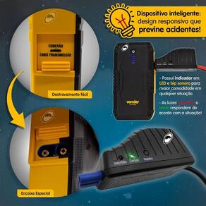 Auxiliar Partida Portátil 12V Vonder Para Carros, Motos, Lanchas Com Lanterna Usb Descrição: Extremamente portátil e fácil de usar, o auxiliar de partida portátil Vonder é ideal para emergências, servindo também como carregador portátil de smartphones ou dispositivos que tenham alimentação USB. possui lanterna de LED de alta luminosidade, além de garras inteligentes que protegem contra ligações de polaridade invertida ou sobrecarga. indicado para auxiliar na partida de veículos em situações com baixo nível de carga da bateria ou totalmente descarregada, com capacidade de aproximadamente até 20 partidas seguindo as orientações do manual . Indicado somente para veículos com baterias de 12 V com motor a gasolina ou etanol de até 4 L 4.000 cc . Benefícios: - Prático e portátil: estojo incluso para transporte; - Power Bank: use para carregar seus dispositivos quando precisar; - Garras inteligentes: Evite acidentes em situações extremas. Características Técnicas: - Modelo: APV 10000 - Capacidade da bateria do auxiliar de partida: 10.000 mAh; - Ciclos de carga: Aproximadamente 1.000 ciclos - Corrente máxima do auxiliar de partida: 700 A - Corrente nominal do auxiliar de partida: 250 A - Temperatura de operação: -20 a 60 - Tempo de recarga do auxiliar de partida: Aproximadamente 3 horas - Tipo da bateria do auxiliar de partida: Polímero de lítio - Tipo de entrada do auxiliar de partida: 5 V DC - 3 A / USB tipo C - Tipo de saída do auxiliar de partida: 2 saídas USB 5 V DC / 2,4 A e 1 saída 12 V DC Auxiliar de partida Itens Inclusos: - 1 Auxiliar de partida. - 1 cabo de transmissão - 1 cabo USB tipo C - 1 fonte para carregamento 100 V- 240 V - 1 estojo em lona. : legal: 90 dias + contratual: 3 meses; A NÃO cobre erros por MAU uso. Marca: Não Informado