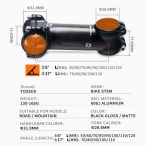 - Tamanho: 140mm - 6 graus de inclinação - Compatível com bikes mtb e speed - Material de alta qualidade : Fibra de Carbono - Mesa altamente resistente - Cor: Preta