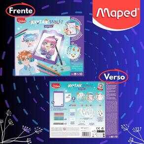 Avatar Tablet Manga Maped Tablete Iluminado 33 Peças Crie retratos de mangá incríveis com o kit completo Maped Inclui tablet luminoso, 17 folhas de modelo transparentes, 8 lápis de cor, 1 lápis grafite, 1 caneta ponta fina e caixa para armazenamento. Aprenda a desenhar olhos, cortes, acessórios e expressões com perfeição