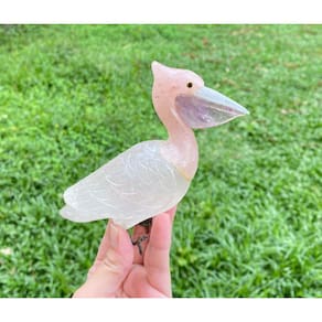 Amostra de Ave esculpida artesanalmente em pedra semipreciosa natural (minerais variados).