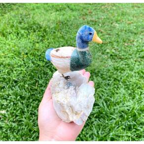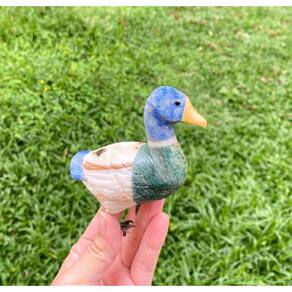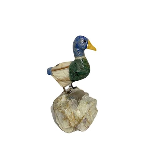 Amostra de Ave esculpida artesanalmente em pedra semipreciosa natural (minerais variados).