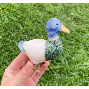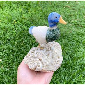 Amostra de Ave esculpida artesanalmente em pedra semipreciosa natural (minerais variados).