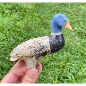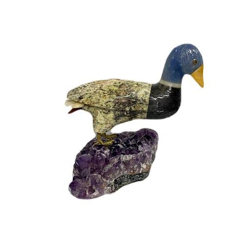 Amostra de Ave esculpida artesanalmente em pedra semipreciosa natural (minerais variados).
