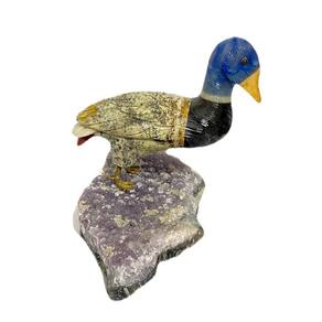 Amostra de Ave esculpida artesanalmente em pedra semipreciosa natural (minerais variados).
