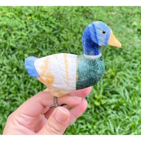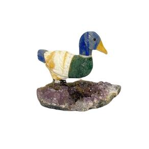 Amostra de Ave esculpida artesanalmente em pedra semipreciosa natural (minerais variados).