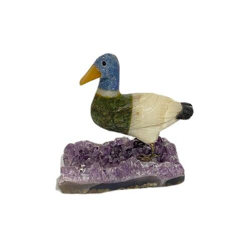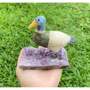 Amostra de Ave esculpida artesanalmente em pedra semipreciosa natural (minerais variados).