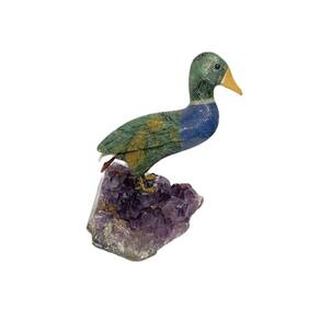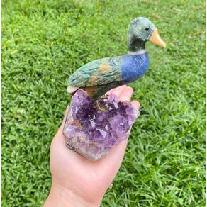 Amostra de Ave esculpida artesanalmente em pedra semipreciosa natural (minerais variados).