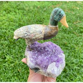 Amostra de Ave esculpida artesanalmente em pedra semipreciosa natural (minerais variados).