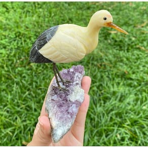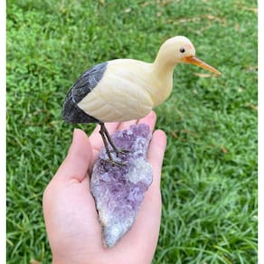 Amostra de Ave esculpida artesanalmente em pedra semipreciosa natural (minerais variados).