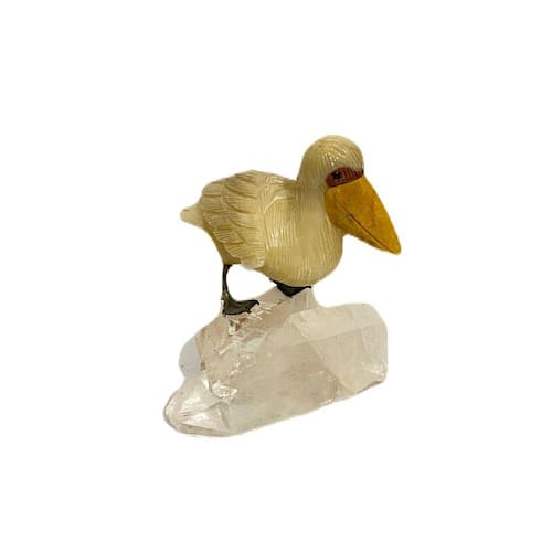 Amostra de Ave esculpida artesanalmente em pedra semipreciosa natural (minerais variados).