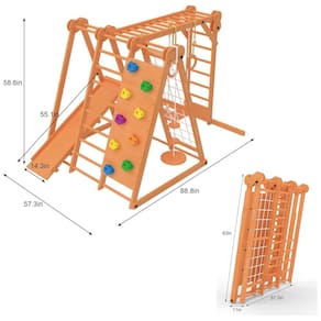 O Avenlur Chestnut é um inovador playground dobrável para uso interno e externo, oferecendo diversão e oportunidades de aprendizado infinitas para crianças a partir de 26 meses. Este parque infantil 7 em 1, no estilo Montessori e Waldorf, apresenta escorregador, parede de escalada, balanço, barra de macaco, rede de escalada de parede e uma escada de madeira. Possui um design que economiza espaço sem comprometer a qualidade ou segurança. QUALIDADE PREMIUM: O Chestnut é feito com 100% de Cedro, uma madeira de alta qualidade projetada para resistir aos elementos externos. Com peças de madeira mais espessas que produtos similares, uma camada adicional de verniz e ferragens livres de ferrugem, o Chestnut é robusto, resistente e construído para durar anos. SEGURANÇA GARANTIDA: Na Avenlur, levamos nossa responsabilidade com a segurança a sério. Nossos produtos passam por rigorosos controles de qualidade na produção e são certificados em segurança e composição. O Chestnut é feito com tintas e selantes não tóxicos. O uso de materiais não tóxicos proporciona tranquilidade aos pais, sabendo que seus filhos não estão expostos a substâncias químicas prejudiciais ao desfrutar do conjunto de balanço. CARACTERÍSTICAS DESENVOLVIMENTAIS: O Chestnut incentiva as crianças a explorar, aprender, desenvolver suas habilidades físicas, cognitivas e sociais. É um playground no estilo Montessori que promove independência, constrói força no corpo superior, fortalece as habilidades motoras e melhora a coordenação do equilíbrio. O Chestnut também promove o jogo livre, o que estimula a criatividade e a imaginação. Seu filho pode testar com segurança seus limites, construir confiança e se divertir por horas. MONTAGEM E ARMAZENAMENTO FÁCEIS: Não é necessária instalação profissional e instruções detalhadas são fornecidas. Ele se dobra facilmente para criar mais espaço. As barras de macaco podem se estender ou fechar contra a estrutura como uma escada. O Chestnut é perfeito para uso ao ar livre e em ambientes internos, como apartamentos, casas pequenas e salas de brinquedo. Montagem e armazenamento sem esforço para pais ocupados.