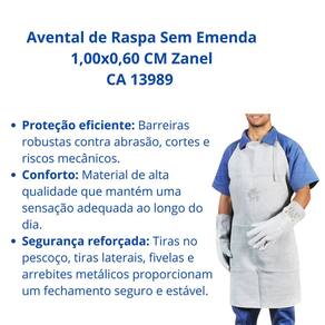 Adquira já seu Avental de Raspa Sem Emenda CA 13989 da Zanel e garanta proteção, segurança e conforto para suas atividades profissionais!