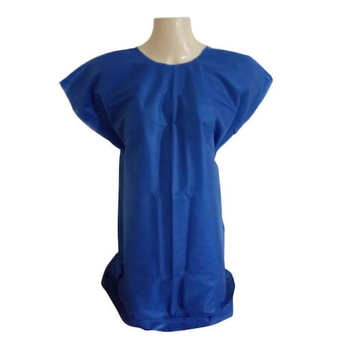 Avental procedimento sem manga, cor azul escuro, confeccionado em tnt gramatura 30, fabricada em 100% polipropileno. Atóxico. Embalagem com 10 unidades.