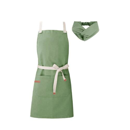Avental e Faixa Verde Cha Mate Algodao Cafeteria Bar Vegano