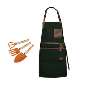 Kit de ferramentas para jardinagem e avental. O conjunto para jardinagem Tramontina é composto por três peças produzidas em metal com cabo de madeira, o conjunto traz ferramentas ideais para o trabalho ao ar livre. O avental profissional da Casacha possui alça regulavel no pescoço, ajuste na cintura atraves das tiras em couro para amarrar e bolsos frontais. Este avental atende bem aos clientes mais exigentes priorizando conforto, qualidade e estilo.