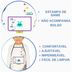 Descrição do produto : O Avental Escolar Decorado Game da Leonora é ideal para tornar as atividades infantis mais divertidas e criativas. Produzido em plástico resistente, ele protege as roupas das crianças durante trabalhos manuais, pintura e outras tarefas. Seu material é impermeável, fácil de limpar e oferece praticidade no dia a dia. Com cores vivas e estampas alegres, o avental estimula a imaginação e o envolvimento das crianças nas atividades escolares e recreativas. : Detalhes técnicos : Marca: LeoeLeo : Peso (kg) : 0,024 Comprimento Emb. (cm) : 13 Altura Emb. (cm) : 0,6 Largura Emb. (cm) : 11,8 -Formato: 49,5x39,5cm. : Detalhes: material de fácil limpeza. : Composição: Poliéster à prova de água. : -Contém 01 Unidade :