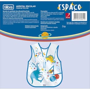 O avental escolar é um ótimo acessório para as crianças se divertirem sem o risco de se sujar. O produto, indicado para manter as roupas limpas durante tarefas manuais com tinta e massinha, conta com bolso interno e amarração dupla nas costas. O avental escolar Tilibra tem estampas alegres e é super prático de lavar.