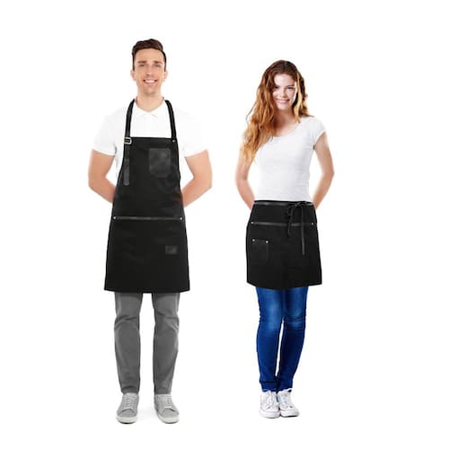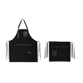 Contem: 1 Avental Corpo Inteiro Tamanho: 74 x 64 cm 1 Avental Curto Tamanho: 47 x 44 cm Material: Brim e Couro