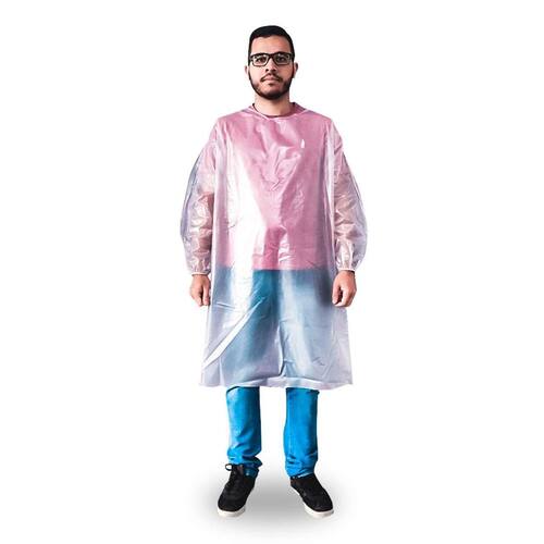 Avental de segurança confeccionado em PVC sem forro de poliester com manga longa. Fácil higienização e esterilização de ambas as superfícies frente e verso pois não possuem forro de poliéster para impregnação de sujidades, bactérias e vírus.