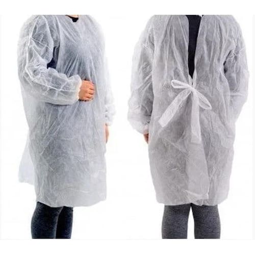 Avental tnt manga longa 1,15 m x 1,40 m Possui fita para amarração nas costas.