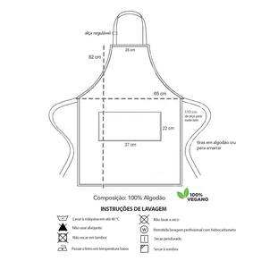 Avental corpo inteiro em tecido com bolso. Alça regulavel no pescoço, ajustavel na cintura atraves das alças para amarrar e bolso frontal. Ideal para chef de cozinha, barista, jardinagem, pintura e outros. Este avental atende bem aos clientes mais exigentes priorizando conforto, qualidade e estilo.