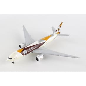 - Novo modelo de avião fundido sob pressão em escala 1/400 da aeronave comercial Boeing 777F “Etihad Cargo - Year of Zayed” branca com gráficos, modelo fundido sob pressão da GeminiJets. Exterior detalhado. Detalhes em escala real.