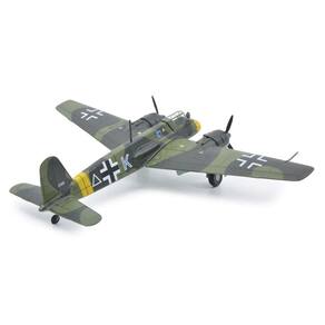 Escala: 1/72 Material: Estrutura principal em metal diecast (metal fundido) Partes plásticas reforçadas para detalhes adicionais Partes Móveis: Hélices giratórias e rodas ajustáveis (no trem de pouso) Dimensões Aproximadas: Comprimento: 12 cm Envergadura: 14 cm Altura: 4 cm (com trem de pouso estendido) Esquema de Pintura: Camuflagem Luftwaffe (tons de verde, cinza e marrom) com marcações autênticas da Alemanha de 1942 Peso Aproximado: 250 g Acessórios Inclusos: Suporte para exposição Trem de pouso destacável para configurações variadas Categoria: Segunda Guerra Mundial – Aviação Militar Ean: 0687312231898