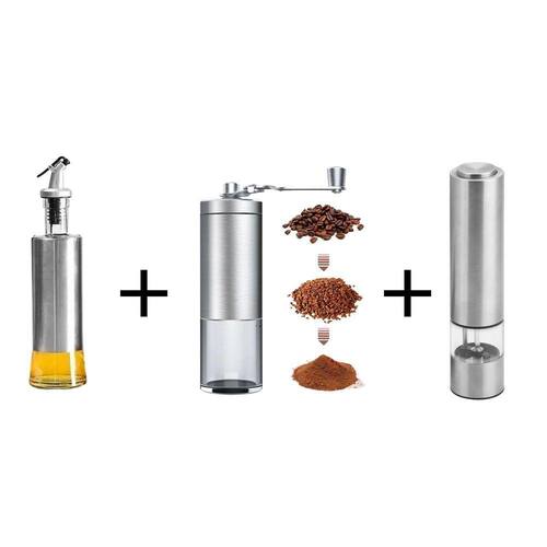 Suporte de Azeite + Moedor de Café Manual + Moedor de Sal e Pimenta