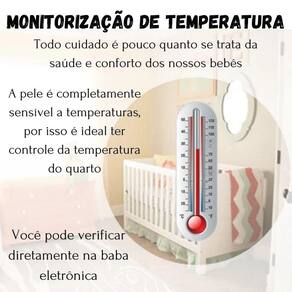 por que é importante monitorar a temperatura do quarto do bebê R: a pele dos bebês é sensível à temperatura ambiente. O controle preciso da temperatura do quarto é essencial para garantir que seu filho esteja sempre confortável e seguro, evitando desconfortos relacionados à variação térmica.